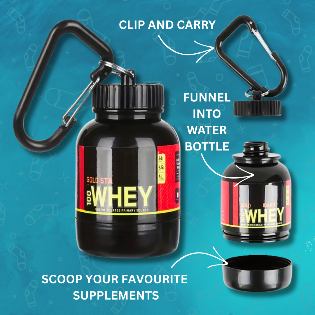CF Sox Protein Bottle Container with Funnel & Belt Key Chain for Easy Carrying – 100ml. Take your favourite supplements with you on the move.